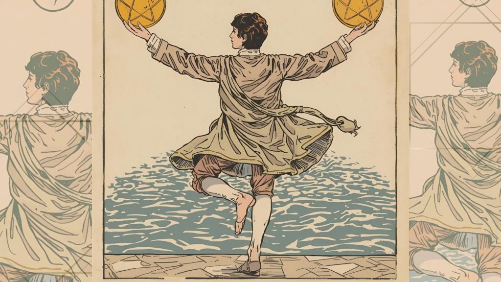 ペンタクルの2の絵柄では、2つのコインを器用に操っている人の姿が描かれています。