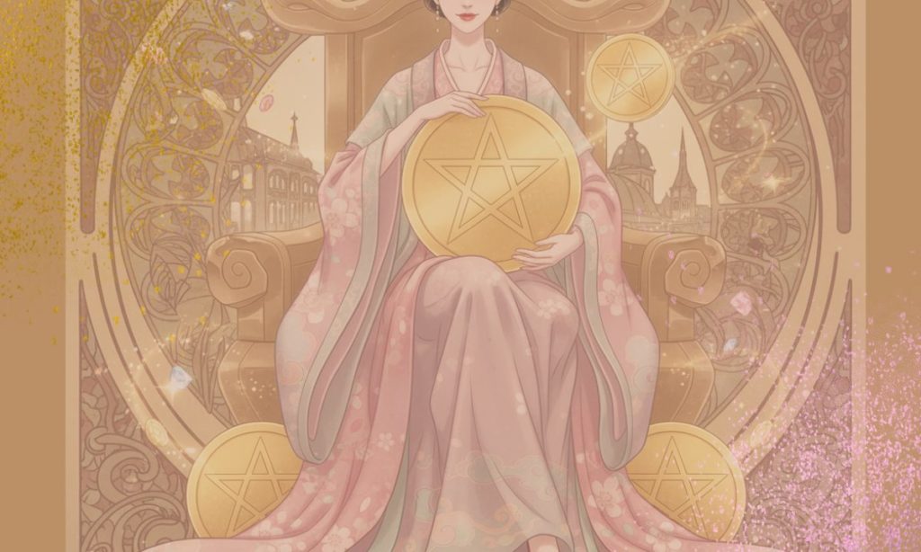 このようなペンタクルの7〜8の内面的な自分との向き合いを経た結果に得られるのが、ペンタクルの9で描かれている豊かさです。